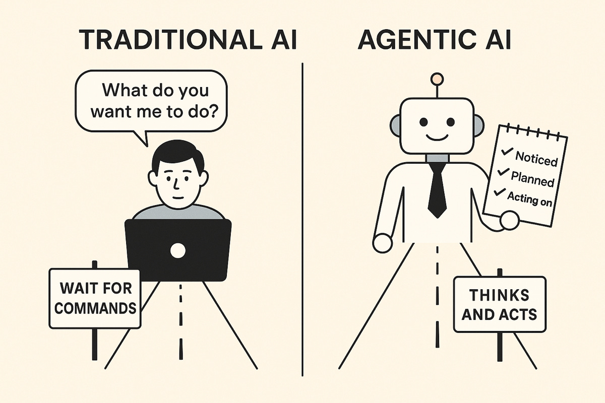 Agentic AI is proactive. It observes, plans, and acts—often without you asking.