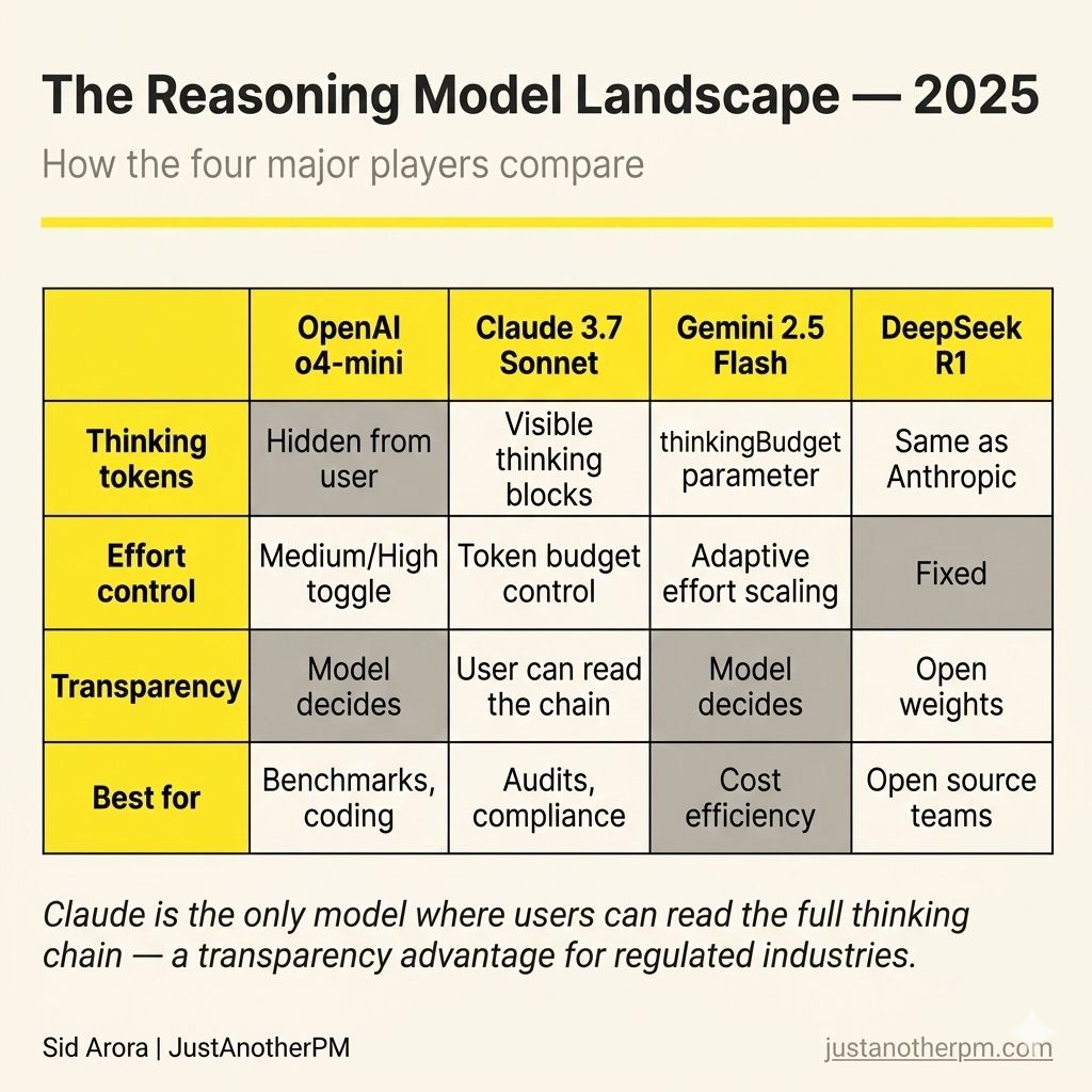 Every major AI lab now has a version of this. OpenAI calls theirs o3 and o4-mini. Anthropic calls it extended thinking. Google calls it thinking mode. DeepSeek released an open-source version called R1.