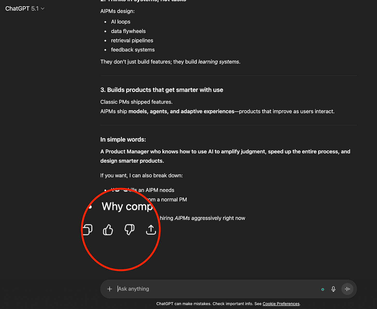 That’s why feedback loops are the real magic of AI products. Feedback is how your system learns what “good” looks like. Every rating, correction, or click refines the model’s behavior.