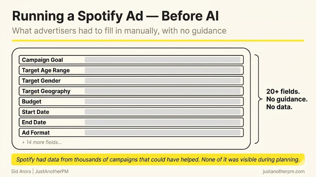 This is what campaign creation looked like on Spotify before they rebuilt it with AI.