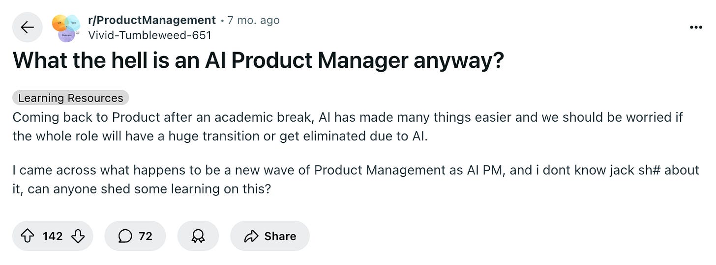 I have been an AI PM for over two years (and a PM for 13). I have seen the confusion firsthand. I am writing this guide to alleviate some of that confusion.